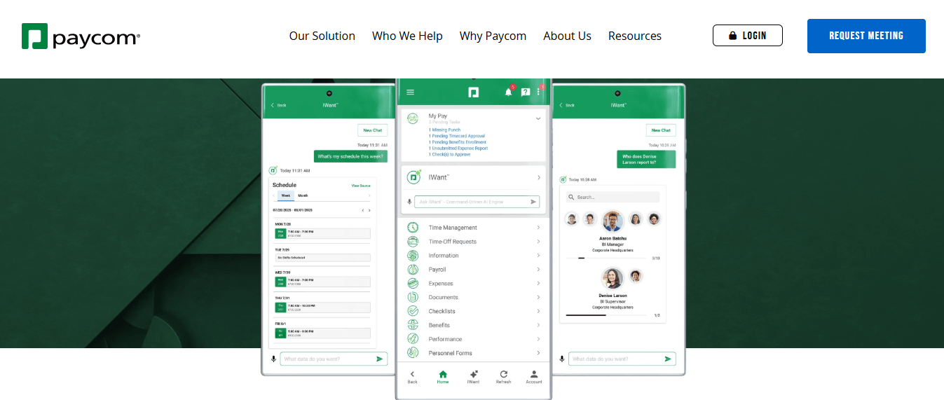 - Employee Self-Service: Allows employees to update personal details, request leave, set goals, and check benefits from mobile or desktop devices.