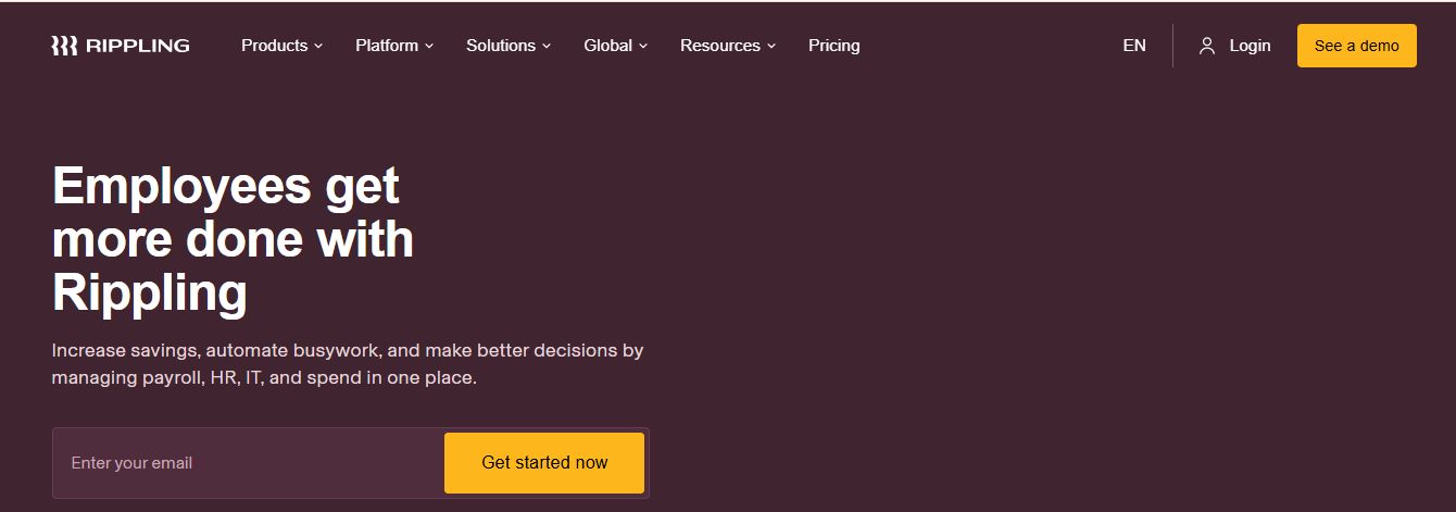 Rippling is an all-in-one HR platform that helps businesses manage both human resources and IT operations in one place. The software is easy to set up and use, which makes it ideal for companies that want quick implementation. Once installed, it automates many HR tasks from onboarding and payroll to compliance and benefits while providing a clean and intuitive interface. Rippling also connects smoothly with hundreds of business apps, helping HR teams manage everything from employee data to devices without juggling multiple tools.