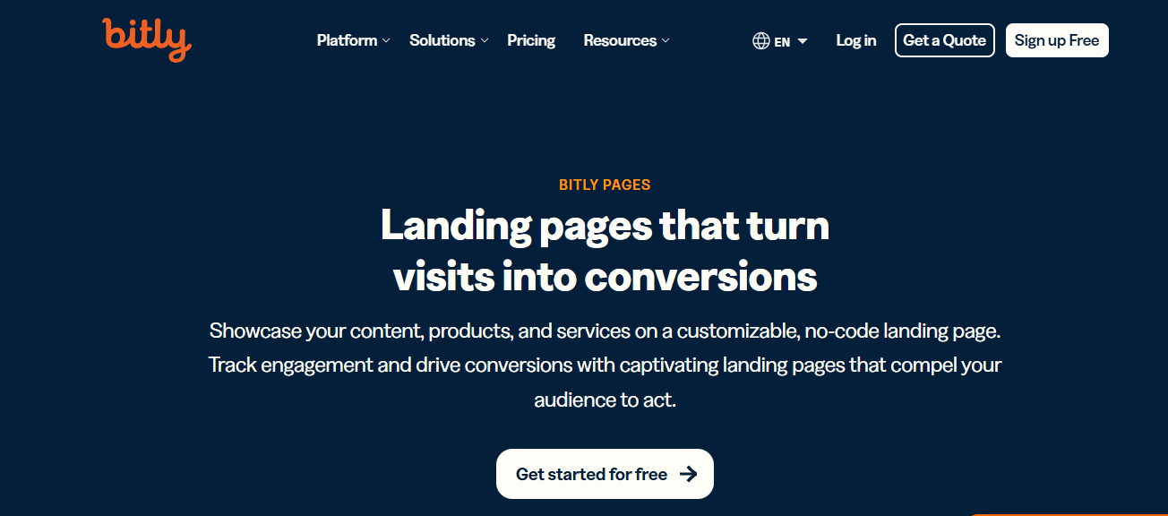 Bitly connects all customer touchpoints, email, social media, and print into one branded destination. The platform helps businesses create landing pages quickly with its built-in page generator and tracks every click to understand user behavior. Bitly focuses on simplicity and performance, allowing users to create effective landing pages and monitor results without advanced technical skills.