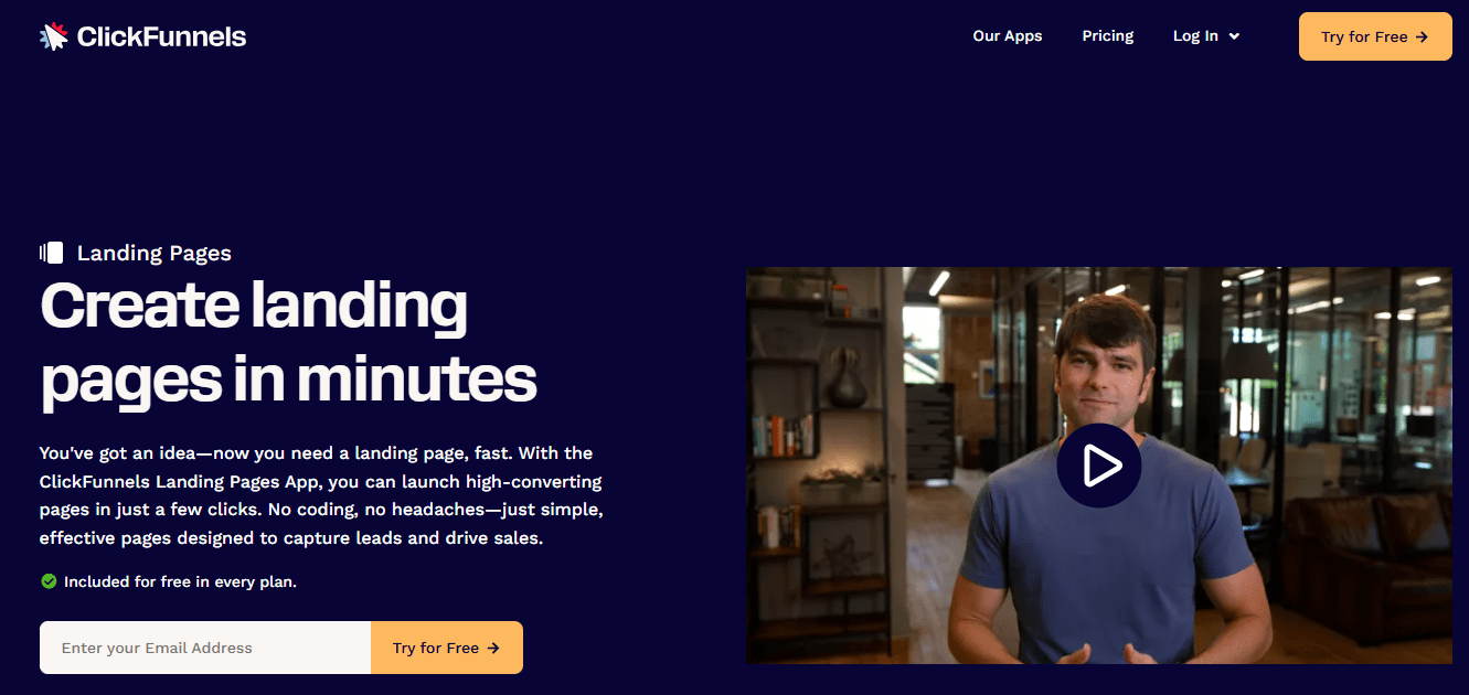 - 60-second page creation: Build and launch landing pages in under a minute.