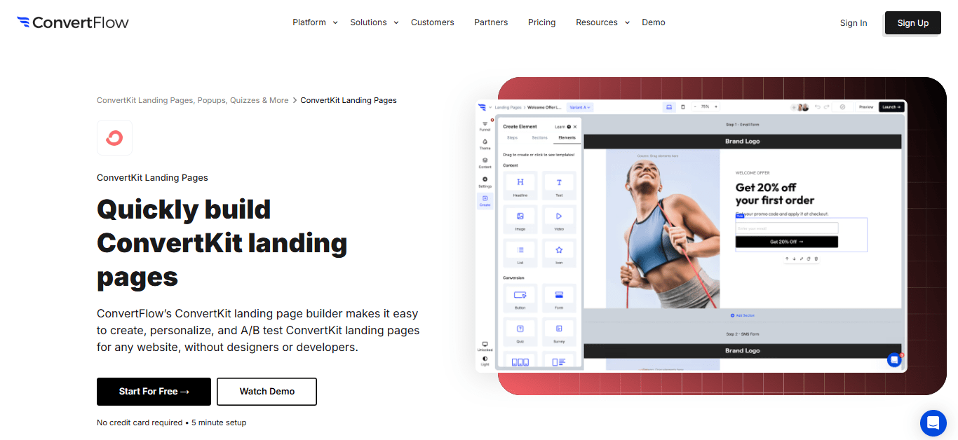 - Landing Page Editor: ConvertKit’s landing page editor allows users to design pages with customizable templates without coding. It works well for creators who need a simple Unbounce alternative for building effective landing pages.