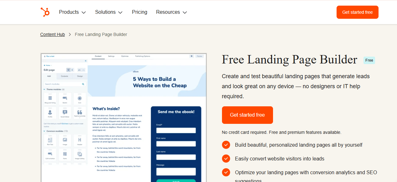 HubSpot is a popular customer relationship management (CRM) software suite. Its Marketing Hub includes a landing page and website builder that serve as strong alternatives to Unbounce. The platform offers a large template library, allowing users to customize landing pages without starting from scratch. It also includes analytics and dashboards that track marketing performance.