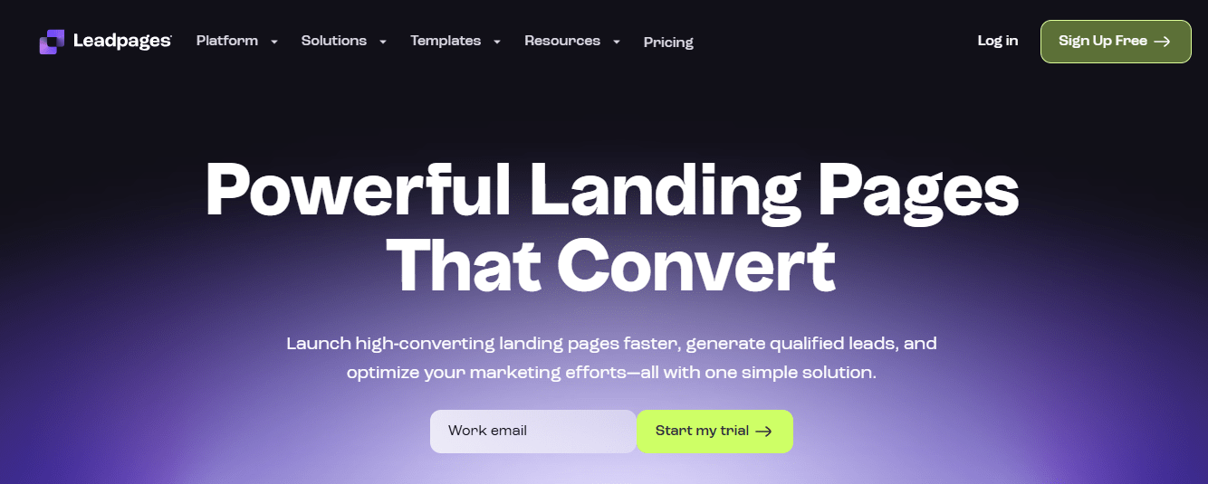Leadpages helps businesses design landing pages quickly and easily, especially for small businesses and users without technical skills. It focuses on fast lead collection through forms, pop-ups, and alert bars, helping businesses grow their email lists and generate qualified leads. Users can test different versions of their pages with A/B testing and enjoy fast page loading speeds that improve user experience.