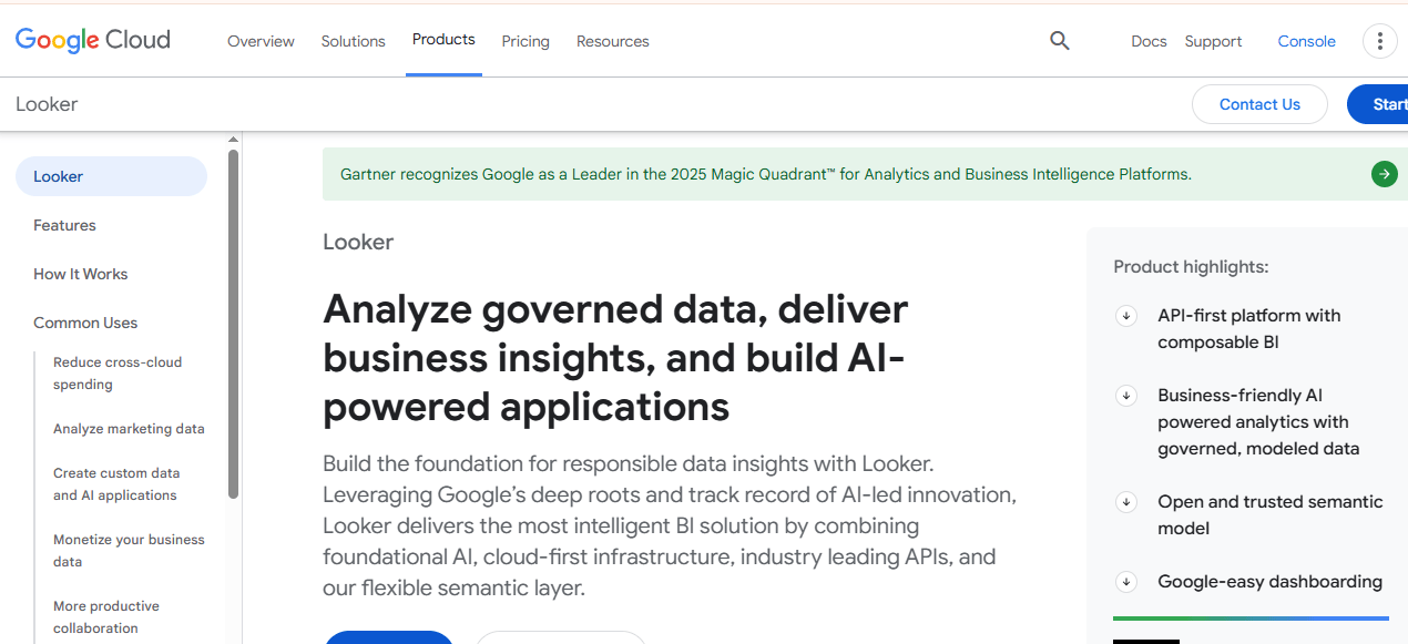 Looker, a Google Cloud analytics platform, helps businesses bring insights directly into the tools they use. Companies can embed dashboards, reports, and analytics inside applications, websites, or portals. Using LookML, a modeling language. Looker defines how data is organized and calculated, ensuring everyone across the business sees consistent metrics and results.