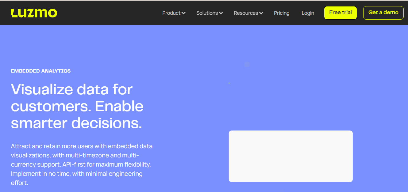 Luzmo is an embedded analytics software designed for SaaS companies. It transforms complex data into visually engaging dashboards that fit directly into any SaaS or web platform. Product teams can integrate Luzmo within days instead of months, enabling users to move quickly from raw data to actionable decisions.