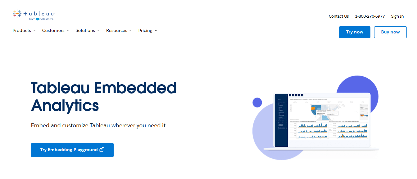 Tableau Embedded Analytics gives advanced, interactive data visualizations for users in the Salesforce ecosystem who need powerful embedded business intelligence. Many companies use Tableau to extend internal dashboards into customer-facing applications. However, its architecture can make external product integration difficult.