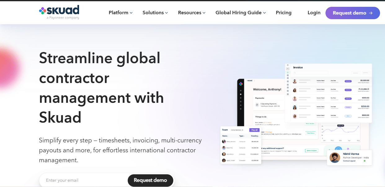 - Pay both domestic and international contractors from one platform