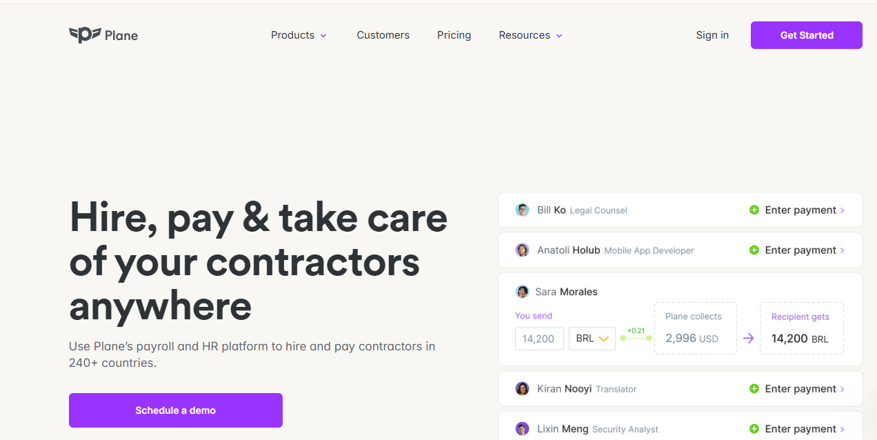 Plane Payroll is an all-in-one platform that helps businesses manage global payroll, human resources, and compliance efficiently. It automates payments, simplifies workflows, and offers a self-service portal that makes payroll management easy for both employers and employees. Designed with growing startups in mind, Plane also provides EOR services, enabling companies to hire workers in other countries without setting up local branches.